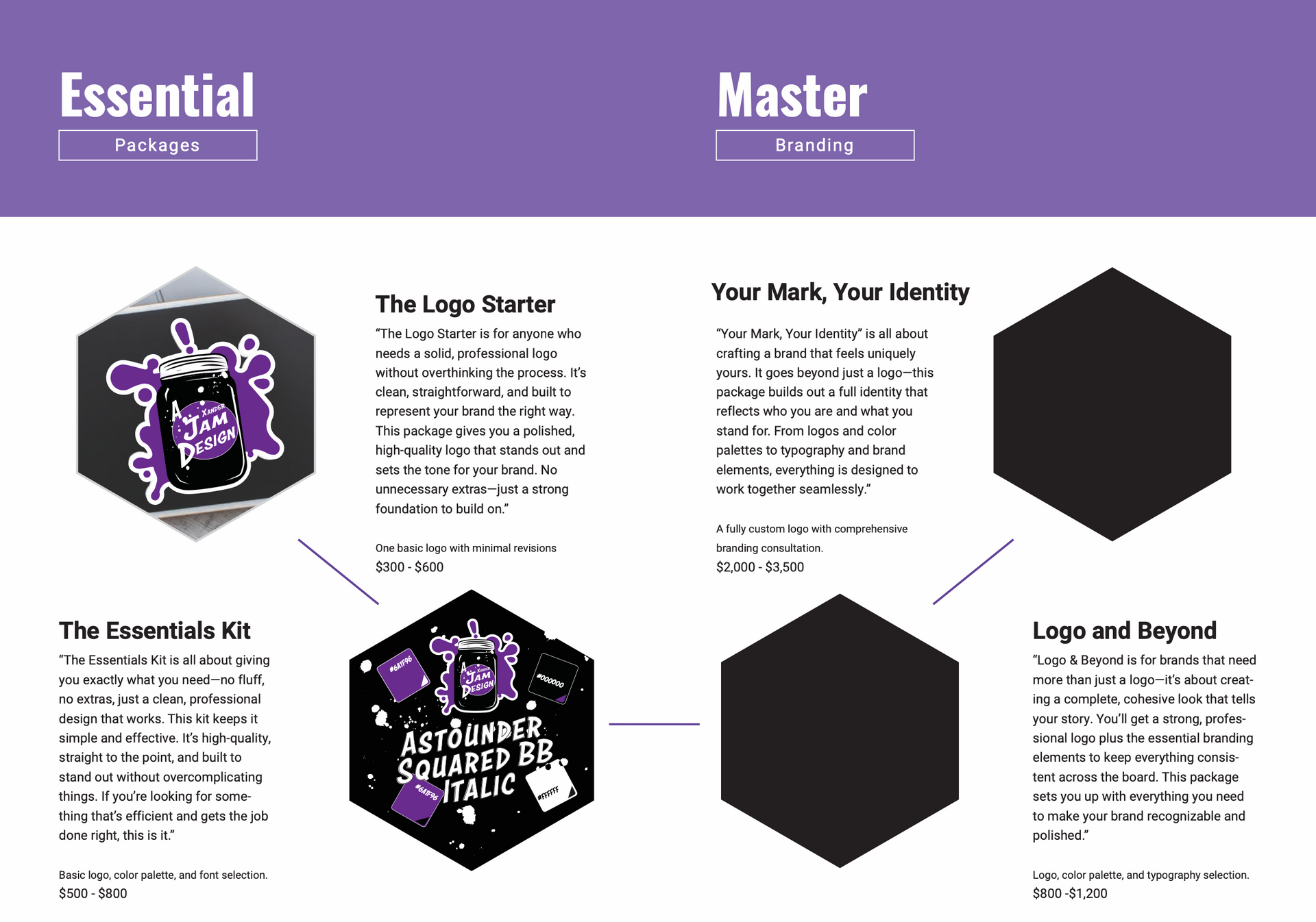 Xander Jam Designs helps brands show up loud, clear, and completely their own. Whether you're building from scratch or revamping something that’s gone a little stale, I turn vision into visuals that actually mean something. Logos, colors, fonts, guides, strategy—I offer flexible packages and custom options so you can get exactly what you need (without paying for what you don’t). No fluff. No filler. Just design with purpose, voice, and a little bit of chaos—because forgettable? That’s not in my vocabulary.